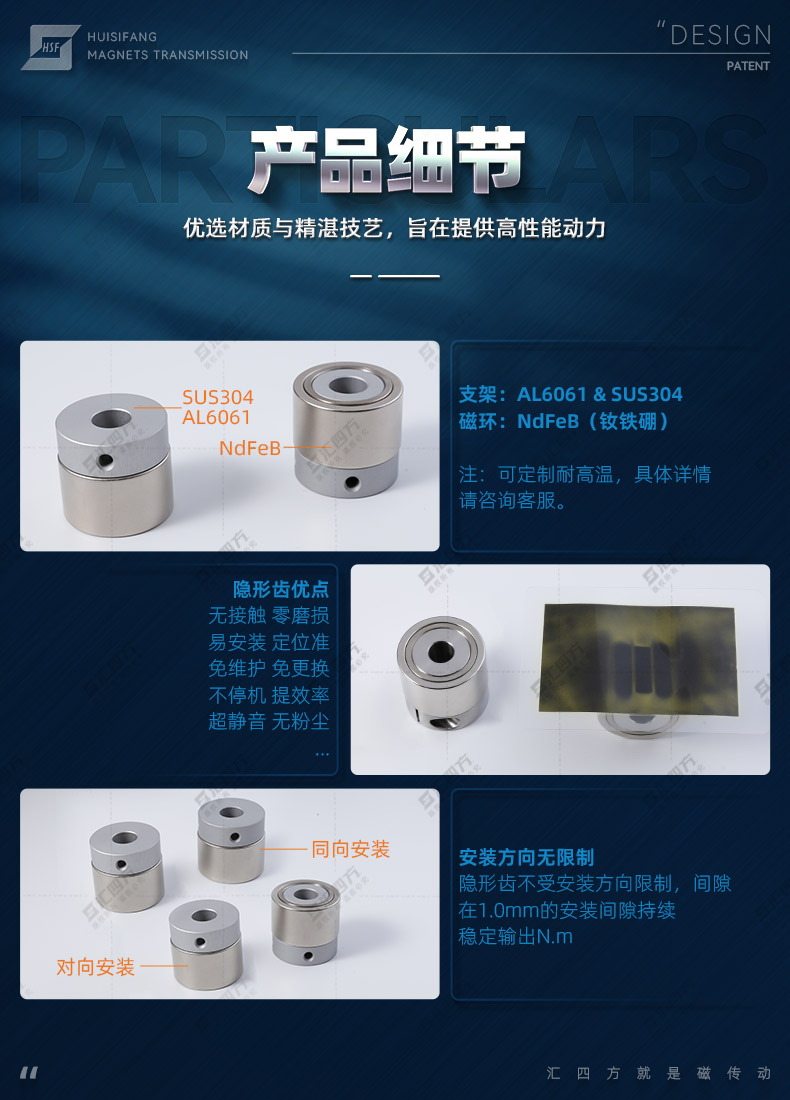 磁力輪(Magnet Gear)又稱為磁性齒輪。涵蓋了直交磁力輪、平行磁性磁力輪。是利用磁鐵的吸力和斥力的相互作用原理,非接觸式動力傳遞裝置。磁力輪適合在潔凈的環境下,不允許細微雜質的LCD、PDP、PCB、TFT、OLED、SOLAR CELL等生產線上以非接觸狀態的傳動裝置,可替代依靠接觸式的齒輪驅動。從根本上杜絕在使用接觸式齒輪傳動時產生的粉塵等問題。在光電設備、半導體設備、3D玻璃設備、液晶模組設備、物流倉儲設備、PCB線路板設備等領域有著廣泛的應用。